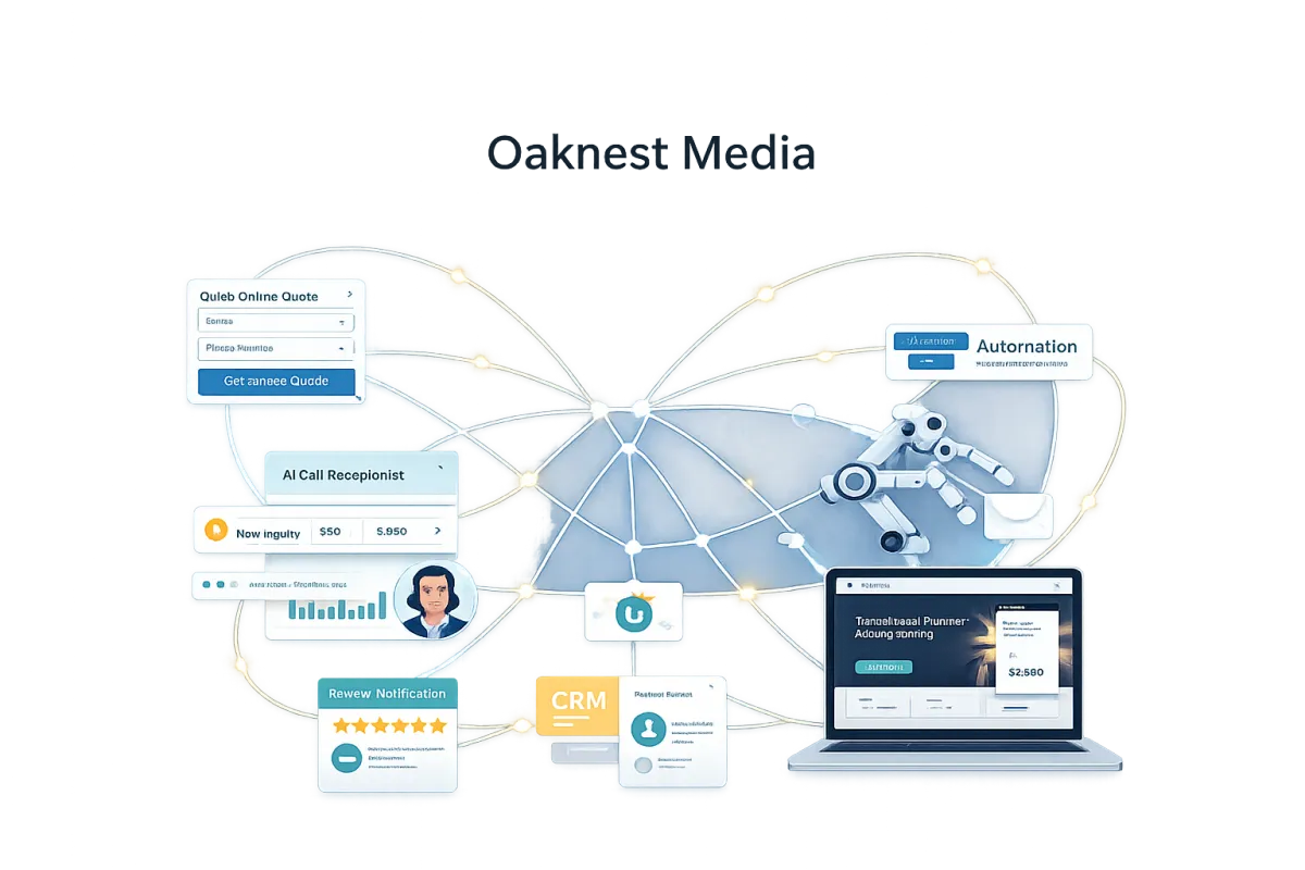 Oaknest Media helps businesses capture more leads, respond faster, and operate more efficiently using smart websites, AI receptionists, and automation systems. We design practical solutions that reduce manual work and support real business growth — without complexity or gimmicks.